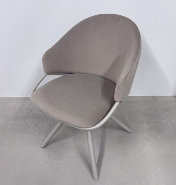 ・ワイドな背面で自然と背筋を預けられる心地よさ。やわらかなトープ色とシャープなスチール脚が、カフェのようなダイニング空間を演出します。